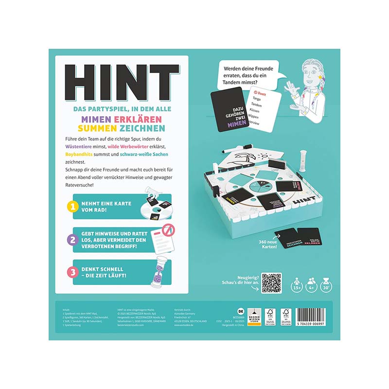 Erlebe kreative Kommunikation in Bestform – mit HINT wird jeder Spieleabend zum Partyhighlight, bei dem Zeichnen, Erklären, Mimen und Summen im Team zum Erfolg führen.