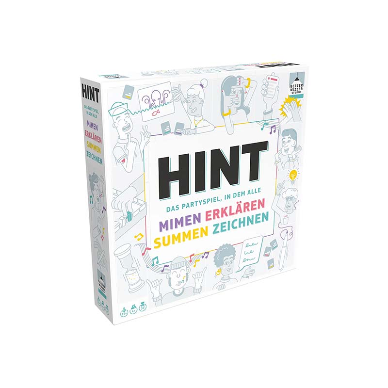 In HINT treten mindestens vier Spieler in zwei Teams gegeneinander an. Der Hinweisgeber bedient sich Karten mit Begriffen, die seine Teammitglieder erraten sollen — allerdings darf er nur durch Zeichnen, Erklären, Mimen oder Summen Hinweise geben. Gleichzeitig gilt es, das Verbot eines bestimmten Wortes zu beachten: Wird es genannt, verliert das Team sofort Vorteile. Das Team, das zuerst das Ziel auf dem Spielplan erreicht, gewinnt.