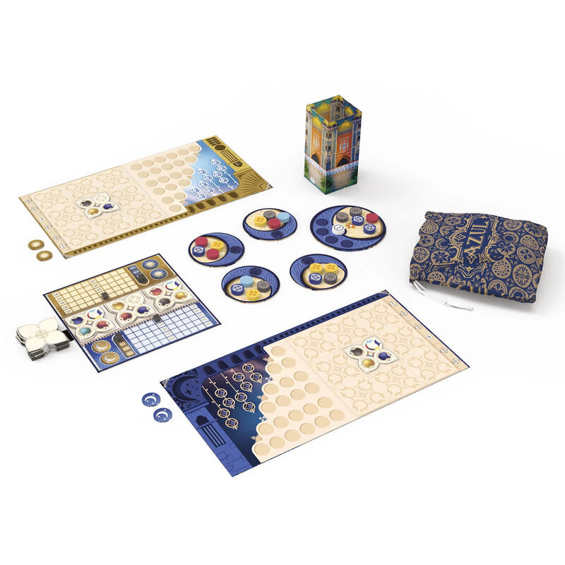 Speziell für 2 Spieler entwickelt, bietet Azul Duel neue Elemente und Mechanismen, die noch mehr taktische und strategische Möglichkeiten bieten als das Original. Dekoriert die Kuppel des Palastes von Sintra mit Platten und runden Fliesen. Stapelt sie so, dass ein Angebot entsteht, dass euer Gegenüber nicht ablehnen kann.