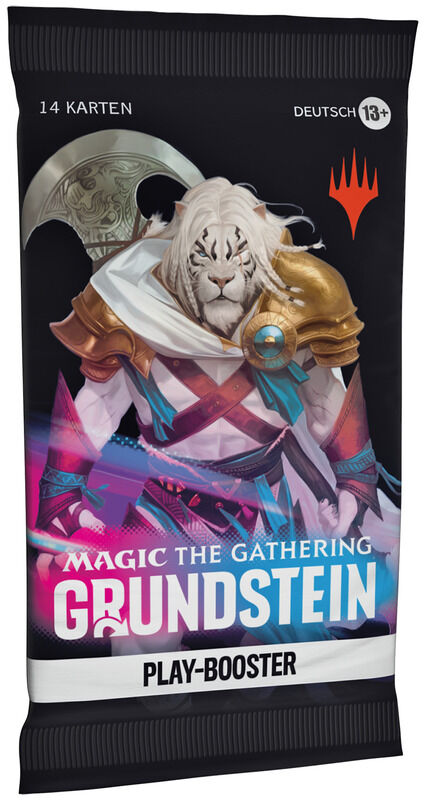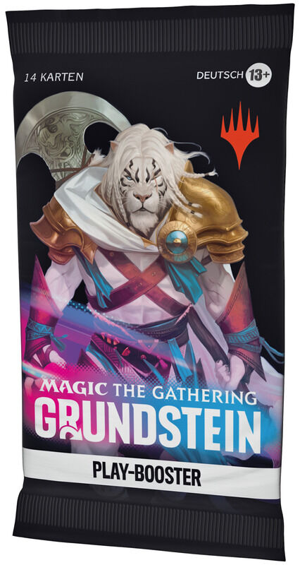 Dieser Grundstein-Play-Booster enthält 14 Magic: The Gathering Karten und 1 Spielstein-/Werbekarte oder Artwork-Karte. (In 30 % der Booster ist eine normale Artwork-Karte enthalten und in 5 % der Booster eine Signatur-Artwork-Karte mit Promo-Aufdruck.)