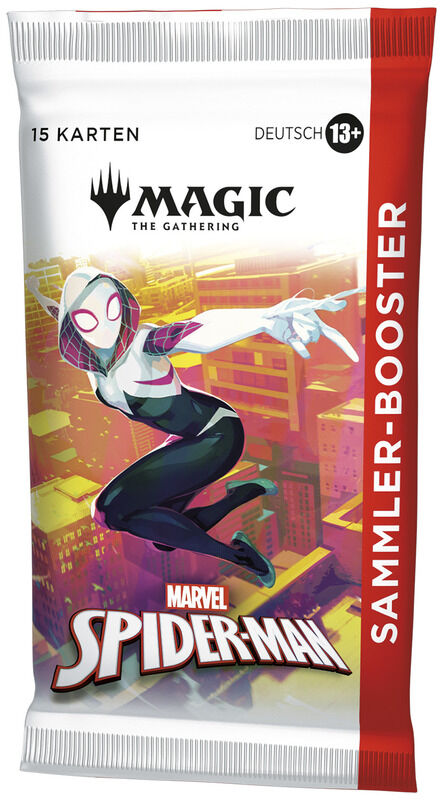 Sammler-Booster vereinen all die coolsten Karten und Foil-Kartendrucke in sich! Jeder Booster enthält seltene und/oder sagenhaft seltene Karten, Traditionelle Foilkarten, ein Standardland ohne Rand und mehr. Netzschleudernde Held*innen treffen vielleicht sogar auf noch mehr wunderschöne Foilkarten und bildhübsche Länder. Vielleicht findest du sogar die Headliner-Karte – das Kronjuwel jeder Sammlung!