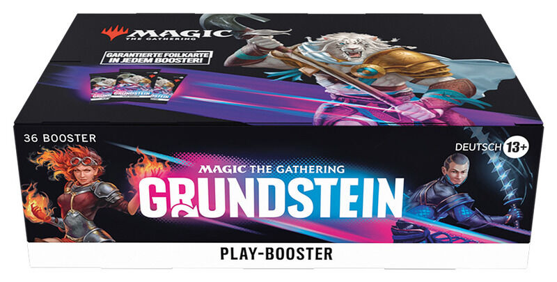 - INHALT DES PLAY-BOOSTER-DISPLAYS – 36 Grundstein-Play-Booster, die jeweils 14 MTG-Karten und 1 Spielstein-/Werbekarte oder Artwork-Karte enthalten