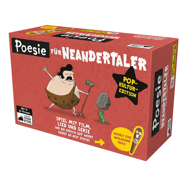 Die Popkultur-Edition des Partyspiels Poesie für Neandertaler ist ein familienfreundlicher Wort-Spaß für Film-, Musik- und Seriennerds aus dem Hause Exploding Kittens – und solche, die es werden wollen!