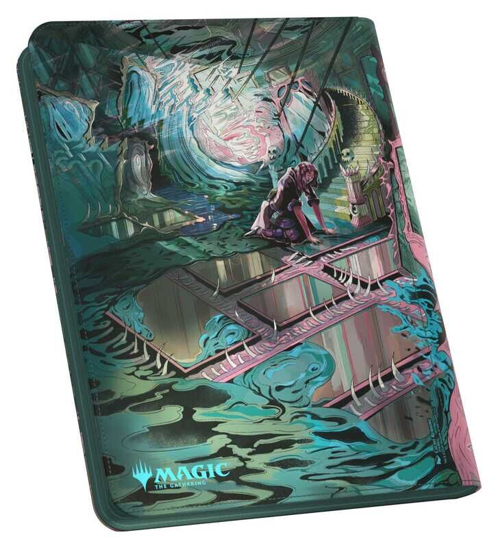 Das Zipfolio 360 Xenoskin Sammelkartenalbum aus hochwertig bedrucktem, strapazierfähigem Xenoskin-Material mit Reißverschluss verfügt über insgesamt 360 Fächer (20 Seiten mit je 18 Fächern) und ein praktisches Side-Loading-Design. Die Zipfolio 360 Xenoskin Alben zeigen offiziell lizenzierte Artworks aus dem kommenden Magic: The Gathering Set „Duskmourn“.