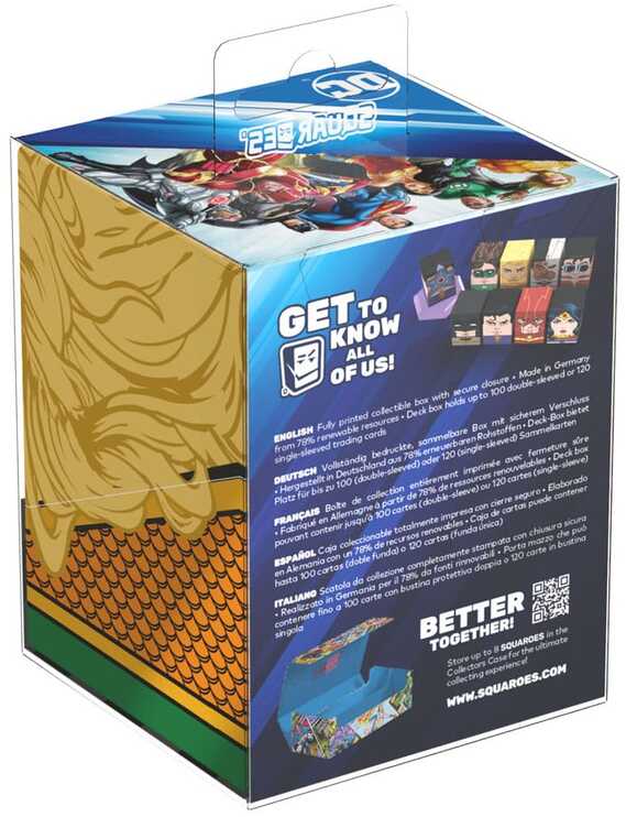 Egal, ob als alleinstehendes Sammlerstück oder als Deck-Box für TCGs (mit einer Kapazität von bis zu 100 Karten in doppelter Schutzhülle): Entdecke die Heldinnen und Helden der DC Justice League™ in quadratischer Form und verpasse auch nicht das Collectors Case als perfekten Aufbewahrungsort für deine komplette Squaroes-Sammlung.