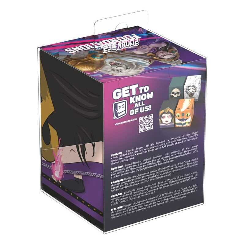 Sammelbare Box zur Aufbewahrung deines Decks, von Tabletop-Zubehör und/oder Sammlerstücken. Der Liliana Squaroe aus der Magic: The Gathering-Edition bietet als Deck-Box benutzt Platz für bis zu 100 Spielkarten in doppelter Schutzhülle. Squaroes werden aus 78% erneuerbaren Rohstoffen hergestellt.