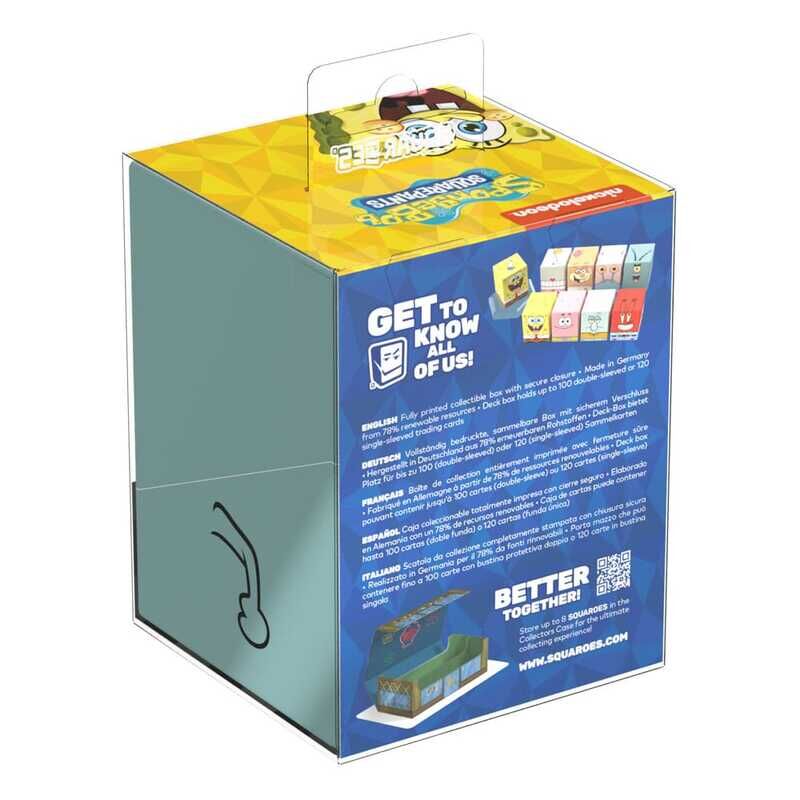 Sammelbare Box zur Aufbewahrung von TCG-Decks, Tabletop-Zubehör und/oder Sammlerstücken. Der Sandy Squaroe aus der SpongeBob SquarePants™-Edition bietet als Deck-Box benutzt Platz für bis zu 100 Spielkarten in doppelter Schutzhülle. Squaroes werden aus 78% erneuerbaren Rohstoffen hergestellt und passen perfekt in das separat erhältliche Collectors Case.