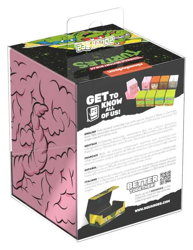 Die perfekte Aufbewahrungsbox für mehrere TCG-Decks, Sammelkarten und natürlich deine Squaroes-Sammlung: Das „Turtle Van“ Collectors Case aus der Teenage Mutant Ninja Turtles™ Edition ist das ideale Zuhause für bis zu acht Squaroes-Boxen, einzelne Sammelkarten (bis zu 1000 in doppelten Schutzhüllen) oder Spielzubehör aller Art. Das vollfarbig bedruckte, strapazierfähige Xenoskin-Material und der starke Magnetverschluss mit ZnapClaw-Mechanismus sorgen dafür, dass alle Inhalte sicher aufbewahrt werden.