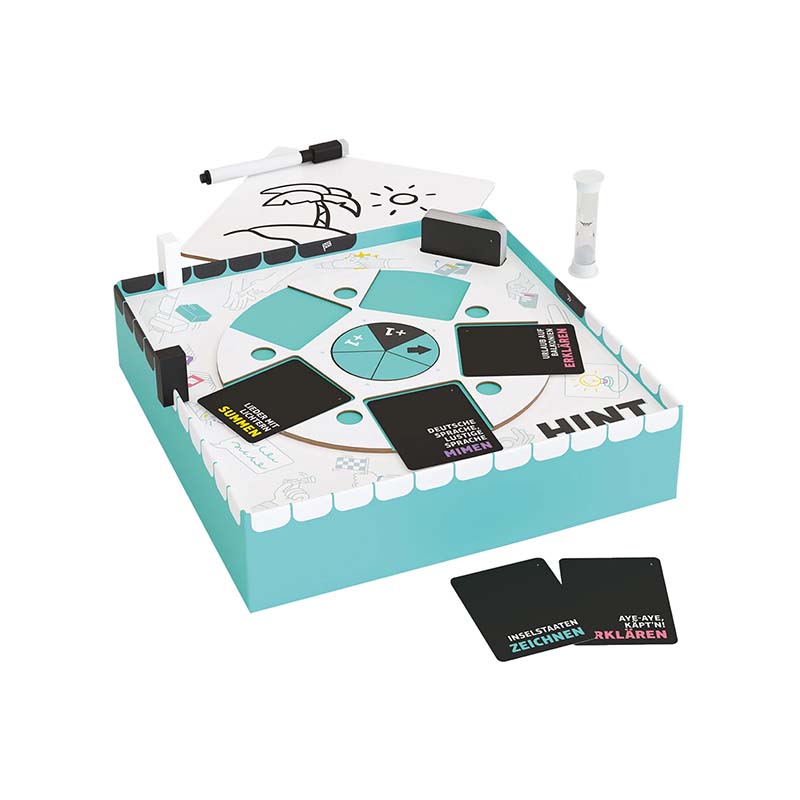 Erlebe kreative Kommunikation in Bestform – mit HINT wird jeder Spieleabend zum Partyhighlight, bei dem Zeichnen, Erklären, Mimen und Summen im Team zum Erfolg führen.