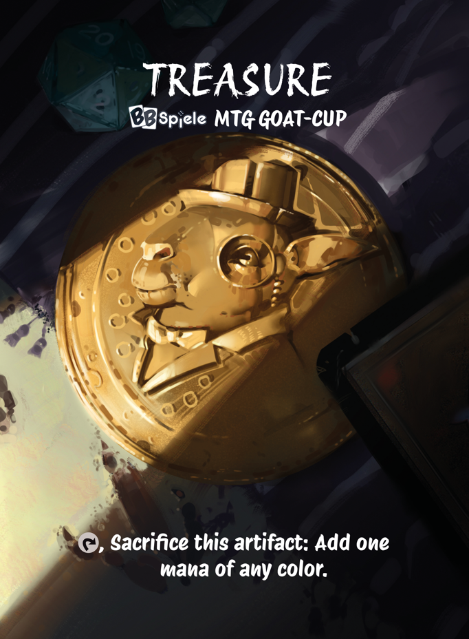 Jeder Teilnehmer erhält einen exklusiven handgemachten BB-Spiele GOAT-CUP Treasure Token. Artwork vom talentierten Alwin Hecher.