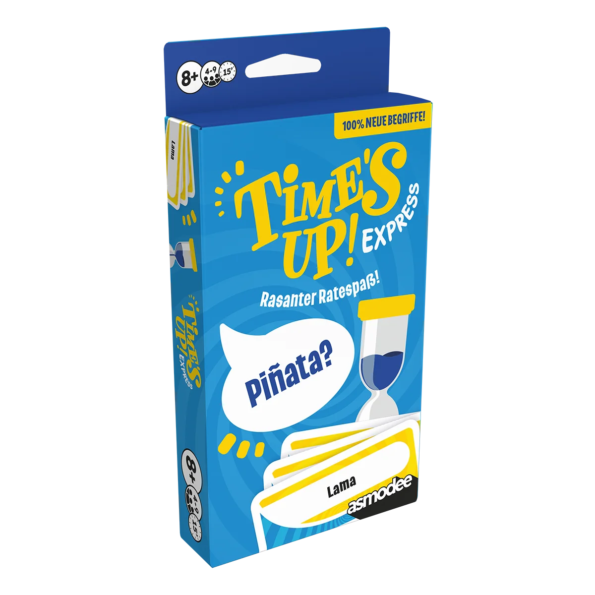 Time’s Up! Express (DE) richtet sich an 4 bis 9 Spieler:innen ab etwa 8 Jahren. Dank kurzer Runden und einfacher Regeln ist es das perfekte Spiel für Familien, Freundesrunden oder den Einstieg in einen Spieleabend. Diese Express-Variante des Klassikers bringt schnelles Spielvergnügen in kompaktem Format.
