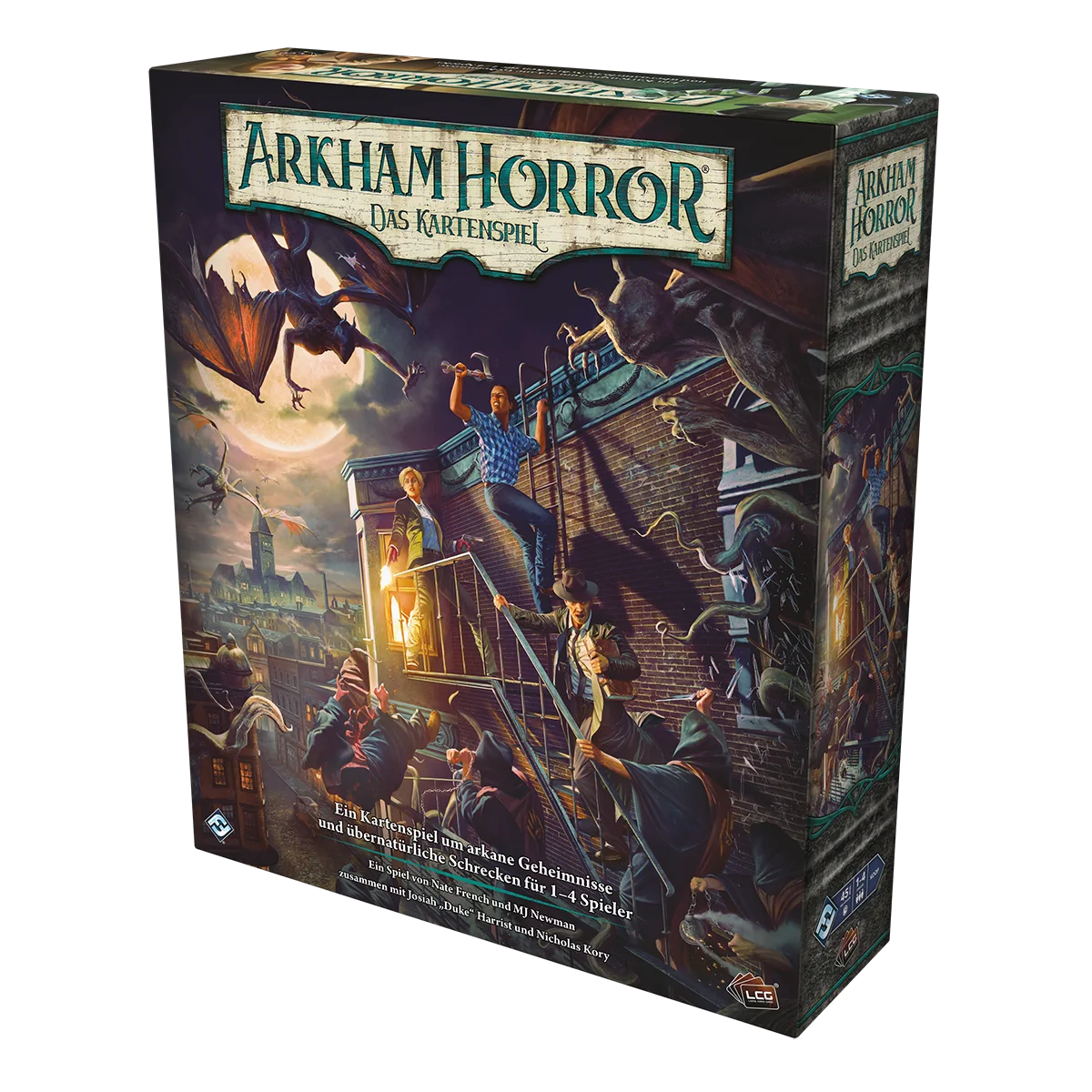 Arkham Horror – Das Kartenspiel ist ein kooperatives Living Card Game, das dich und deine Mitspieler in die düstere Welt von H. P. Lovecraft entführt. Als Ermittler stellt ihr euch gemeinsam unheimlichen Kreaturen, mysteriösen Ereignissen und uralten Geheimnissen, die die Stadt Arkham bedrohen.