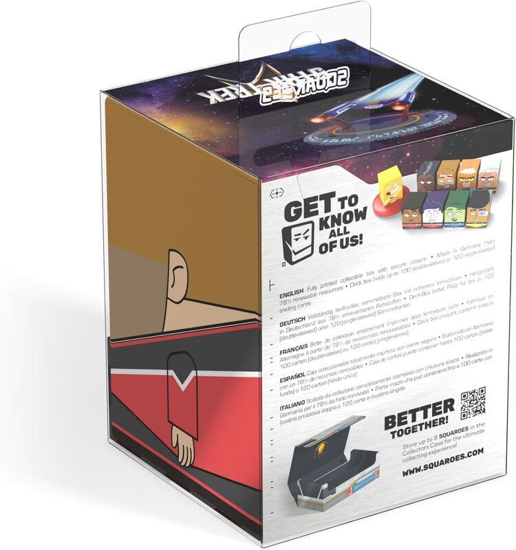 Sie bietet Platz für bis zu 100 doppelt gesleevte Karten im Standardformat und ist vollständig kompatibel mit dem separat erhältlichen Squaroes Collectors Case. Hergestellt aus 78 % erneuerbaren Rohstoffen, ist sie sowohl funktional als auch nachhaltig – ideal für Fans mit Sammelleidenschaft und Sinn für Stil.