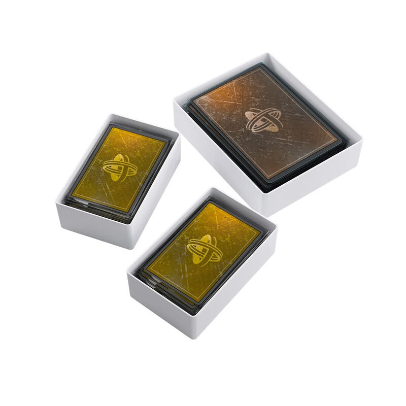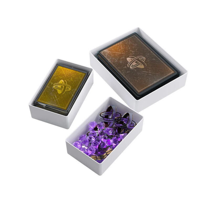 Erweiterung für das Token Silo mit dem 3-teiligen Add-On-Set. Gamegenic's modulares Token Silo speichert und organisiert eine Vielzahl von Token, Karten, Zifferblätter, Würfel und viele andere Gegenstände. Mit diesem Token Silo Cards Add-On können Sie die Fächer des Token Silos austauschen und so ein einzigartiges Produkt schaffen, das den persönlichen Bedürfnissen entspricht. Das Add-On ist besonders hilfreich, um mehr Karten aufzubewahren: Das große Fach fasst 40 einzeln gesleevte oder 75 ungesleevte Standardkarten (64 x 89 mm), das kleine Fach fasst 45 einzeln gesleevte oder 65 ungesleevte Mini-American-Karten (42 x 65 mm). Das Token Silo Cards Add-On ermöglicht maximale Flexibilität und Modularität.