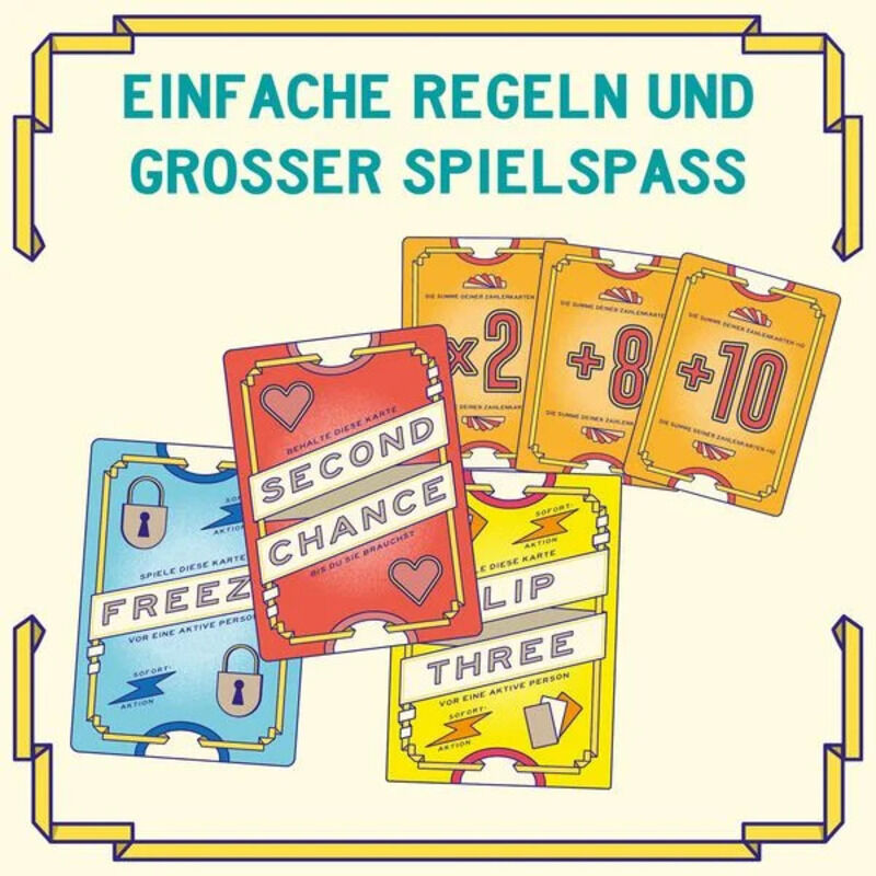 Sammeln, zocken, jubeln – oder alles verlieren! In diesem schnellen und spannenden Kartenspiel geht es Runde für Runde um die entscheidende Frage: Steigst du aus und sicherst deine Punkte – oder riskierst du alles für mehr? Doch Vorsicht: Wer zweimal dieselbe Zahl zieht, scheidet sofort aus!