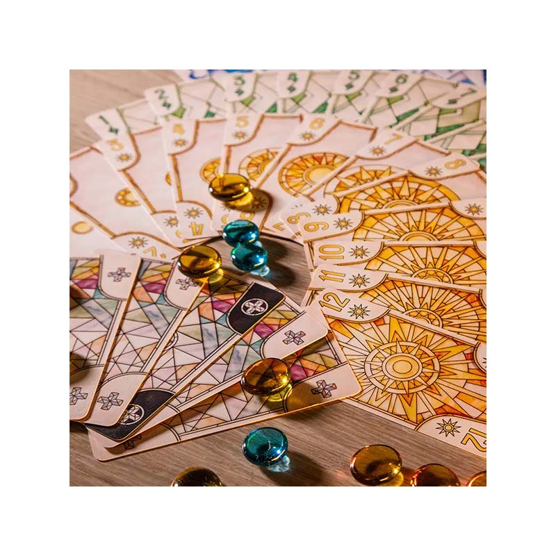 Jeder Spieler hält Karten so, dass er nur deren Rückseiten sieht – die Farben sind erkennbar, aber nicht die Zahlen. Runde für Runde werden Karten an die Mitspieler weitergegeben, und du musst schätzen, wie viele Stiche du wohl machst. Glasperlen markieren deine Schätzung, und am Ende entscheidet sich, ob du deine Vorhersage erfüllt hast – oder ob du riskierst, Punkte zu verlieren. Die Mischung aus unvollständigen Informationen, geschickten Spielzügen und dem Nervenkitzel der Vorhersage macht jede Partie anders.