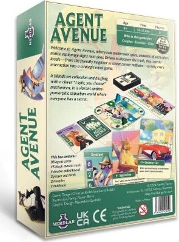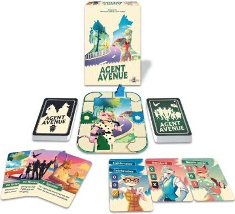 In Agent Avenue von Nerdlab Games begeben sich 2 Spieler ab 8 Jahren in die Welt pensionierter Spione, die in einer beschaulichen Vorstadt leben – aber der Frieden trügt. Jeder versucht, die Bewegungen des anderen zu durchschauen, sie auszutricksen und schließlich als Meisterspion zu triumphieren.