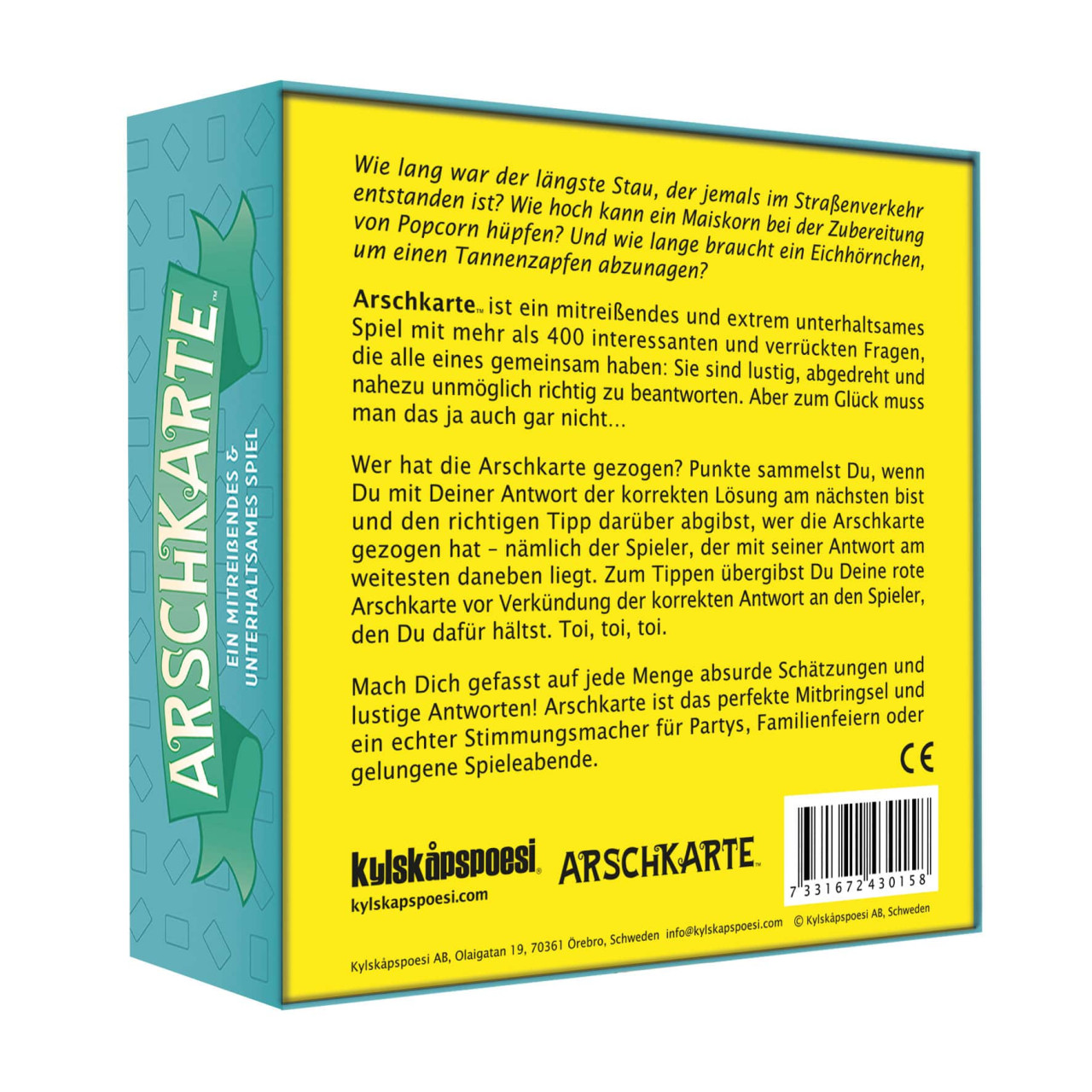 Arschkarte ist das ideale Partyspiel für alle, die schwarzen Humor, direkte Interaktion und unvorhersehbare Spielmomente lieben – perfekt für gesellige Abende mit Freunden.