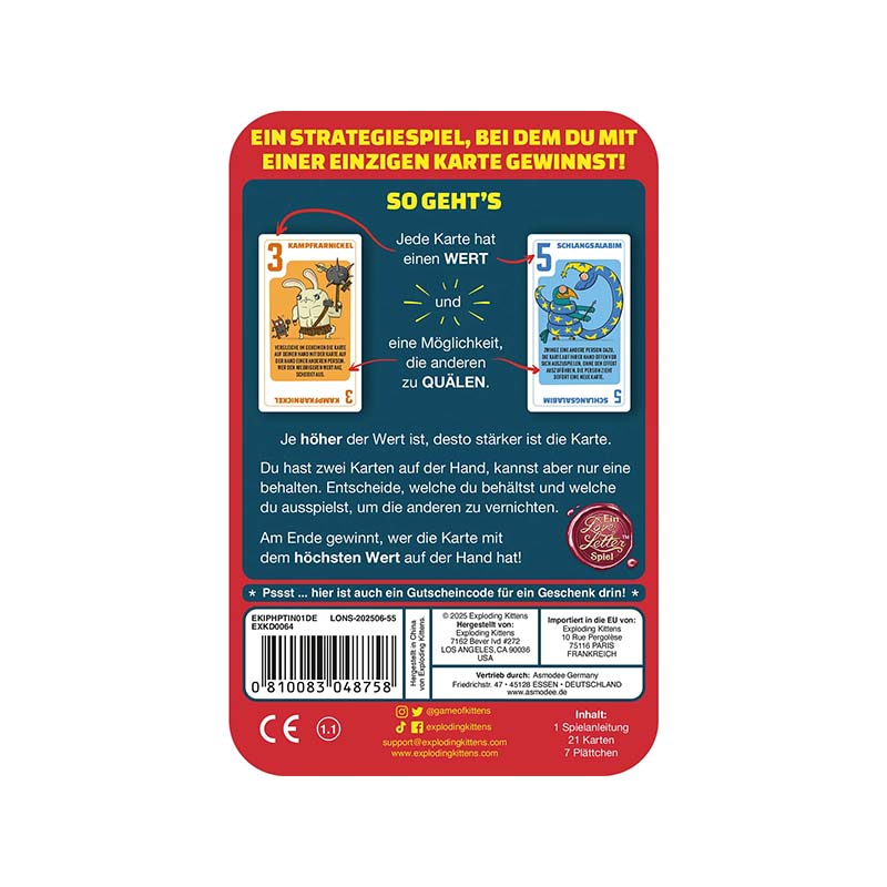 • Ziel: Am Ende des Spiels die höchste Karte besitzen und den Katzenkönig sichern.