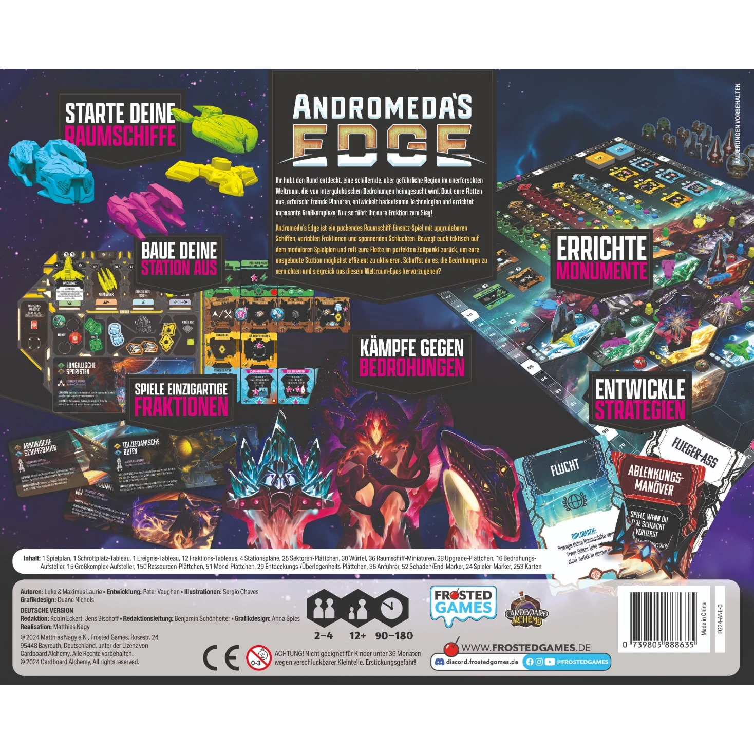 Ein strategisches Weltraum-Abenteuer für 2–4 Spieler (Solo-Option möglich): Andromeda’s Edge versetzt dich an den Rand der Andromeda-Galaxie. Baue deine Raumstation, stationiere upgradbare Raumschiffe und errichte eine neue Zivilisation – während du zugleich galaktischen Gefahren und rivalisierenden Fraktionen begegnest.