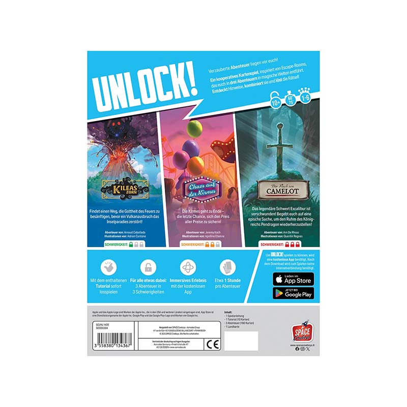 Unlock! Enchanted Adventures enthält drei eigenständige Escape‑Room‑Abenteuer, die dich in fantastische Szenarien wie eine Insel mit Vulkan, eine lebhafte Kirmes und das sagenumwobene Königreich Pendragon führen. Ideal für Familien oder Freundesgruppen, die gemeinsam knobeln möchten – solo spielbar oder mit bis zu sechs Personen.