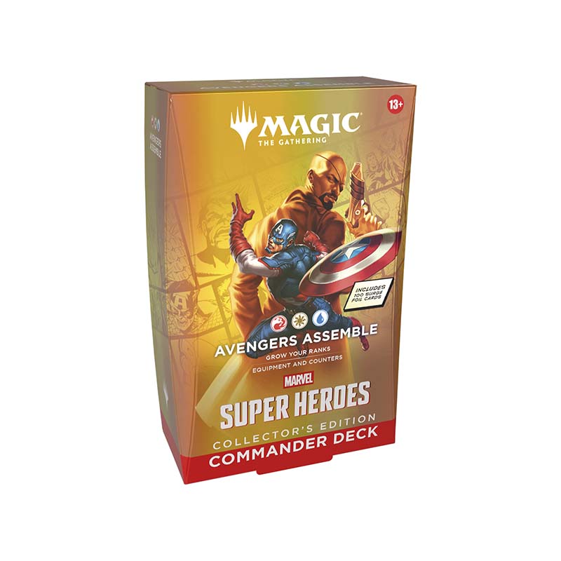 • ein sofort spielbares Commander‑Deck mit 100 Magic‑Karten in englischer Sprache, komplett als Surge‑Foil‑Ausgabe, inklusive einer Borderless‑Commander‑Karte• rund 30 neue Magic‑Karten, die erstmals im Marvel Super Heroes‑Set erscheinen