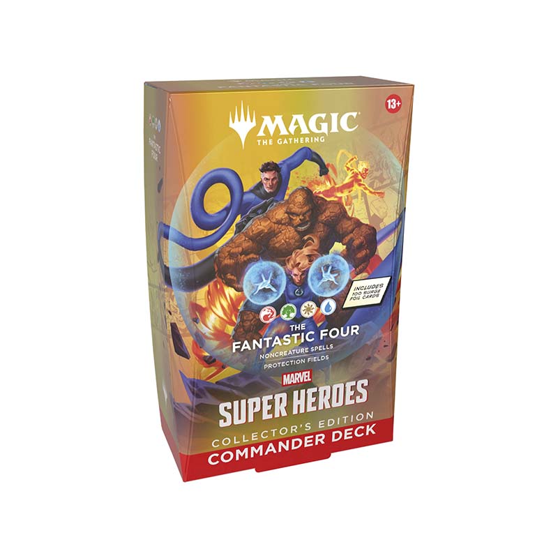 Das Marvel Super Heroes Collector’s Edition Commander Deck The Fantastic Four ist ein Premium‑Commander‑Deck aus der Magic: The Gathering Marvel Super Heroes‑Edition in englischer Sprache. Als Teil der Collector’s Edition‑Reihe sind alle 100 Karten als hochwertige Surge‑Foilkarten gedruckt, was diesem Deck einen optisch eindrucksvollen Look und Sammlerwert verleiht.