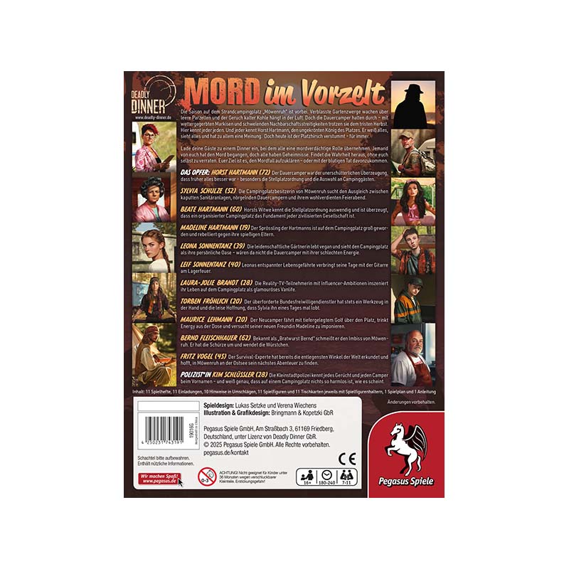 Deadly Dinner – Mord im Vorzelt versetzt dich auf einen Strandcampingplatz, auf dem der Platzhirsch Horst Hartmann tot aufgefunden wurde. Zwischen Markisen und Dauercampern entsteht ein mörderisches Dinner, bei dem die Teilnehmenden selbst zu Verdächtigen werden.