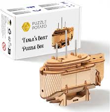 Puzzle Potato – Tesla’s Boat entführt dich auf die Spur einer legendären Erfindung und verwandelt Rätsellust in ein haptisches Abenteuer. Mit Tesla’s Boat bekommst du eine liebevoll gestaltete Puzzle‑Box, deren Öffnung ein clever konstruiertes, mechanisches Rätsel gleicht — ideal für alle, die Herausforderung, Knobelspaß und Überraschung lieben.